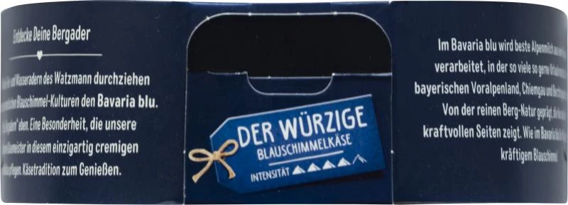 Der würzige Klassiker – Mit seiner wunderbar cremigen Konsistenz und dem hohen Blauschimmelanteil, der ihm seine unverwechselbare Würze verleiht, überzeugt er Blaukäseliebhaber seit Jahren. Schmeckt besonders lecker auf knusprigem Brot oder in der warmen Küche zum Würzen von cremigen Suppen oder in Pasta-Soßen.