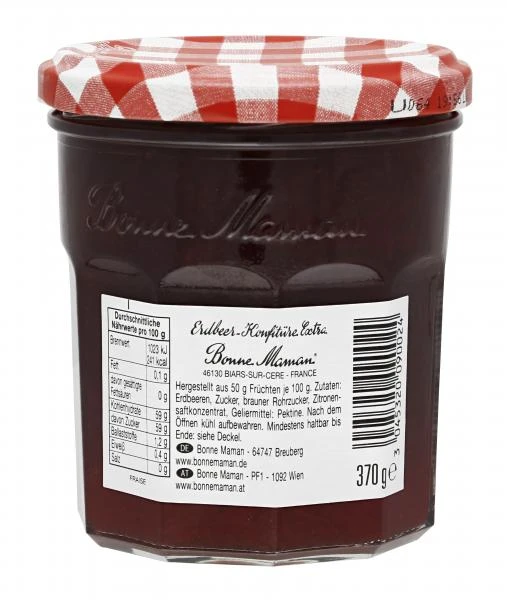 Mit ihren verführerisch zarten Fruchtstückchen schmeckt die Erdbeer-Konfitüre von Bonne Maman nicht nur auf dem Brot, sondern auch direkt vom Löffel hervorragend.
