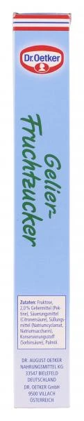 In Dr. Oetker Gelier-Fruchtzucker wurde ein Teil des Zuckers reduziert und durch Süßungsmittel ersetzt. So können Sie im Vergleich zu einer 1:1 Konfitüre um 40% kalorienreduzierte, fruchtig süße Konfitüren und Gelees für den Hausgebrauch herstellen.