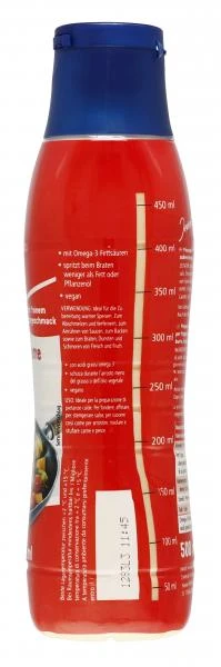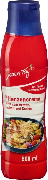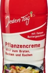 Pflanzencreme mit feinem Buttergeschmack. Mit Omega-3-Fettsäuren. Spritzt beim Braten weniger als Fett oder Pflanzenöl.