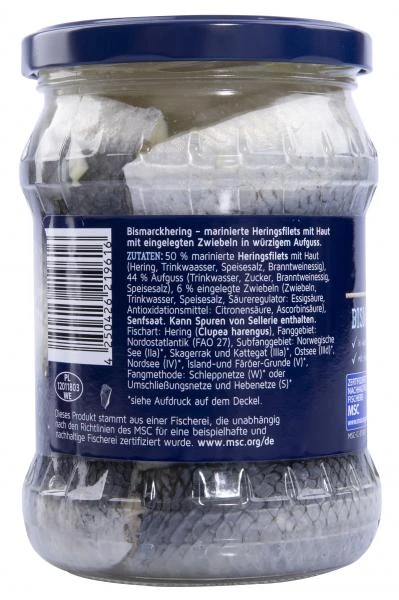 Bismarckhering in würzigem Aufguss. Mit eingelegten Zwiebeln.
