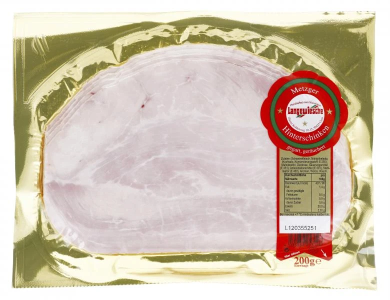 Hinterschinken, gegart und geräuchert. Nur 5% Fett.