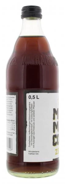 Zuckerfreies, koffeinhaltiges Erfrischungsgetränk. Mit Zitronengeschmack, mit Süßungsmitteln, mit Auszügen aus Kolanuss und weiteren Pflanzen.