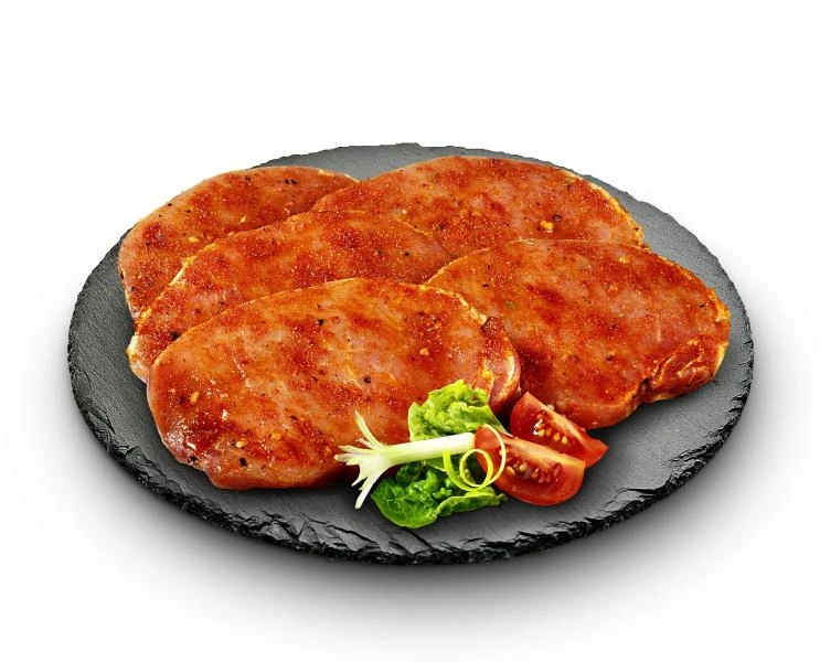 Rückensteaks gewürzt. Sehr zarte Steaks aus dem Schweinerücken.