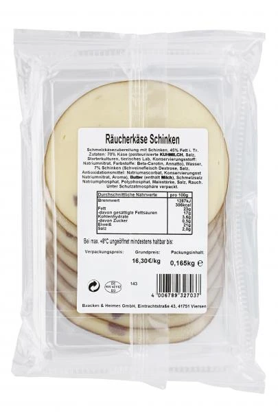Tilbury Räucherkäse Schinken in Scheiben.