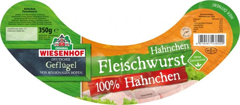 Fleischwurst ist vielseitiger Wurst-Genuss, auf Brot, im Salat, als Snack. Die Wiesenhof Hähnchen Fleischwurst bietet puren Hähnchen-Geschmack, denn sie enthält 100 % Hähnchenfleisch von deutschen Wiesenhof Hähnchen.