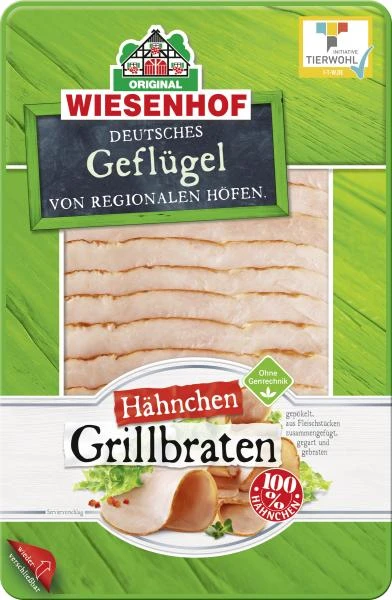 Das ist purer Hähnchen-Genuss, denn das Fleisch für den Wiesenhof Hähnchen Grillbraten kommt zu 100 % von deutschen Wiesenhof Hähnchen. Eine fein abgestimmte Rezeptur sorgt für den leckeren Grillgeschmack.