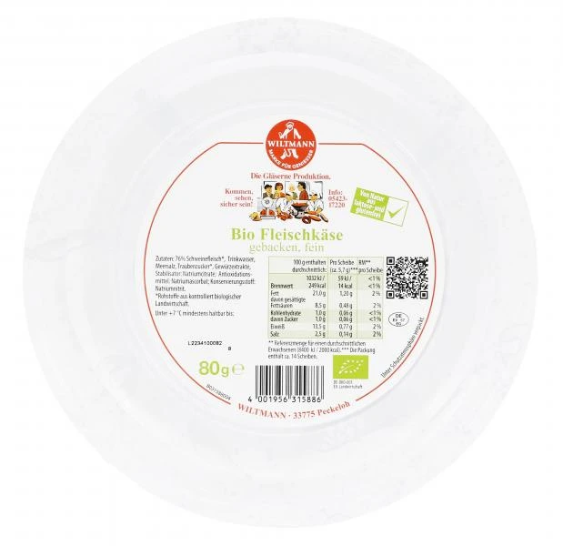 Wiltmann Marke für Geniesser – Gebackener und feiner Bio Fleischkäse.
